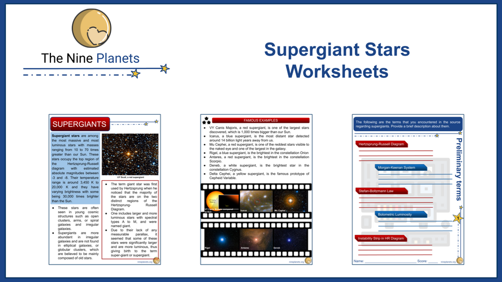 Supergiant Stars Worksheets for Kids